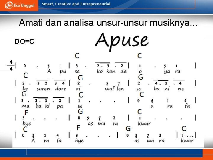 Garis Melodi Lagu Apuse : Not Angka Ayo Mama Seputar Musik - Melodi adalah susunan dari sebuah nada yang seting dengan tinggi rendahnya, pola, serta harga nada sehingga menjadi kalimat lagu.